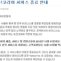 | 야후! 코리아 서비스 종료, 2012년 12월 31일로 끝 (0) | 2012.12.09 |